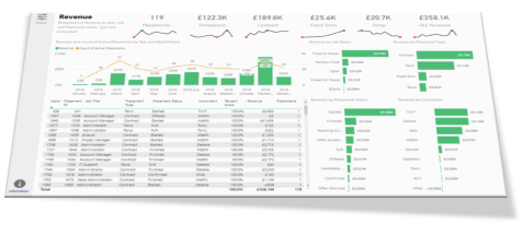 Report on revenues, shifts, jobs, placements, margins, users, divisions, departments, company types, business sectors, job locations, CV stats, interview stats and much, much more...