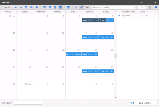 Note: - You can apply a shift pattern to enable quick calendar entries, see shift patterns section for more details