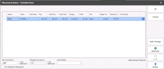 | Edit Placement Shift Core Rate | Enables you to set which rate should be applied to the selected shift(s) | |||||||||