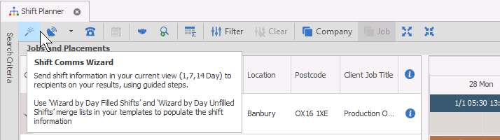 Utilise the Comms Wizard to send email / SMS messages to candidates or contacts, using the current shift planner view | Placement and Jobs |