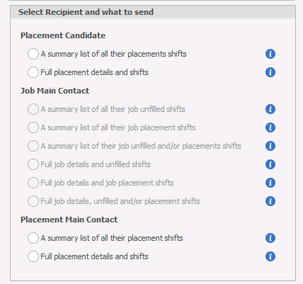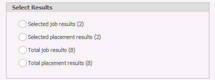 The options available are dependent on the type of results (job / placement) and whether results were selected prior to entering the comms wizard