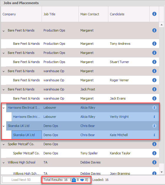 - A summary list of their job unfilled and/or placements shifts - available if both unfilled and filled shifts are searched