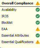 Displayed if candidate does not have the Quals & Certs you have recorded (in the Job record) within their candidate record, serving as a warning but will allow you to Place candidate |