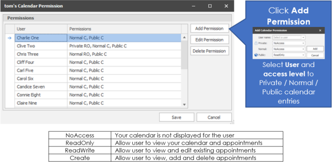 Set permissions for Public, Normal and Private appointments you add to your calendar, note that this works as a hierarchy so if you set permissions for Private appointments the system will assume that you would also share Normal and Public appointments to the same level. This allows you to give access to Normal appointments but keep Private NoAccess as appropriate.