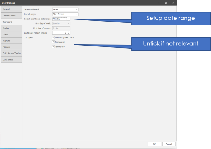 Ensure you setup the Dashboard as desired, date range and Job Types are the main settings.