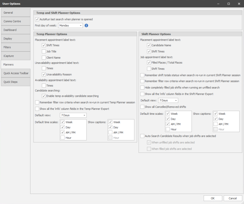 2. Set User Options – there are numerous user options that will improve the workflow of individual users, although some settings are dependent on the type of consultant you are below are the general settings to get you started or should be considered: