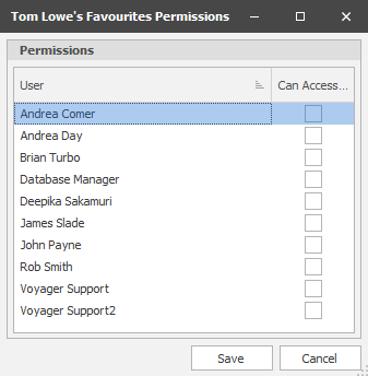 This will display everything in that users Favourite panel. This is read only access and functionality to add / remove favourites or folders is not available when viewing another users Favourites panel. The user can open up the favourite records by clicking on the link. The user can switch back to ‘Me’ to see their own Favourites panel again.