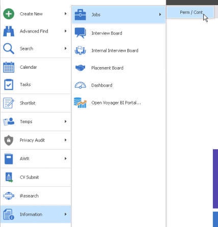 - Application Menu / Information / Jobs / Perm/Contract