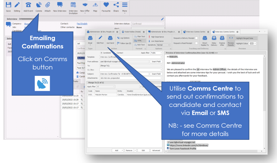 If there are multiple interviewers click on the plus to add the list of names. These will be pulled through to a comms centre template for confirmation to the candidate and contact