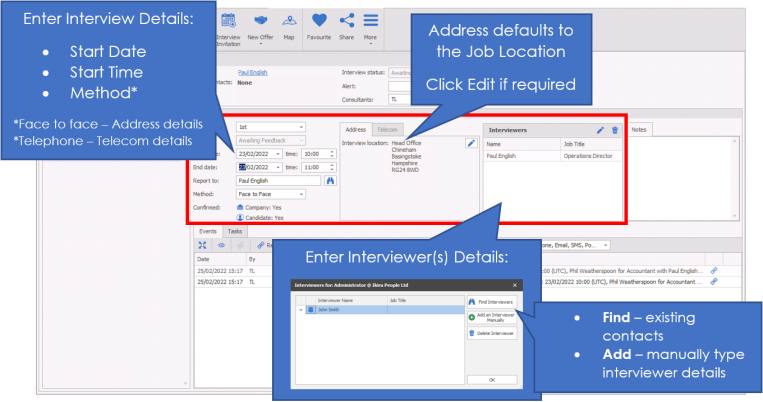 This area if for you to confirm where an interview is taking place, or which communication method should be used if it is not a face to face interview. E.g. which telephone number, Skype address etc.