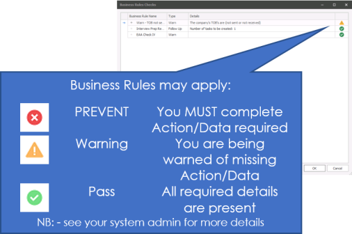 - Create a new interview or placement without selecting a Job [as shown in the example below] and a new job will automatically be created as long as it complies with the Mandatory Fields checks. If the Mandatory Field checks are not met then the user will be informed.