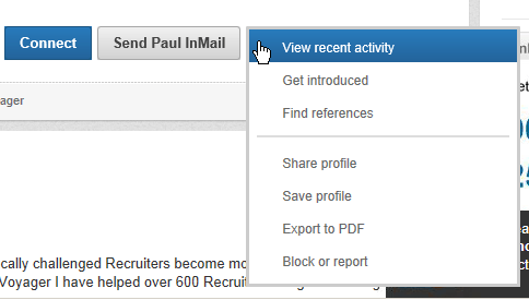 If you wish to export the LinkedIn profile into iCapture then hover your mouse over the dropdown arrow (right of Send InMail option) and select Export to PDF: