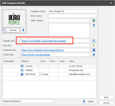 This will then set appropriate URL into the basic details area and ensure that when ever this Company is reviewed it displays this LinkedIn page.