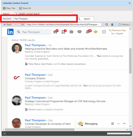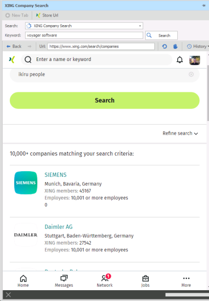 Allows you to search XING for the Company. The same method of taking information from the LinkedIn profile applies to XING