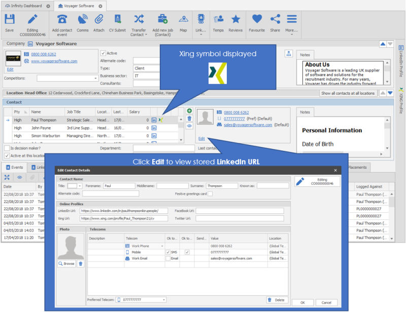 This will then set appropriate URL into the basic details area and ensure that when ever this contact is reviewed it displays this Xing page.