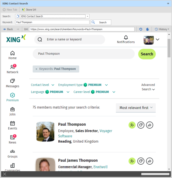 Allows you to search XING for the contact. The same method of taking information from the LinkedIn profile applies to XING