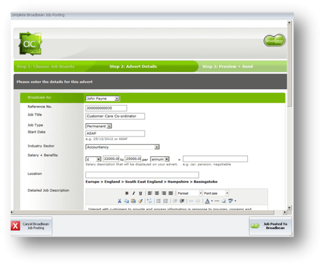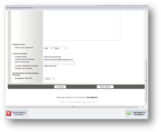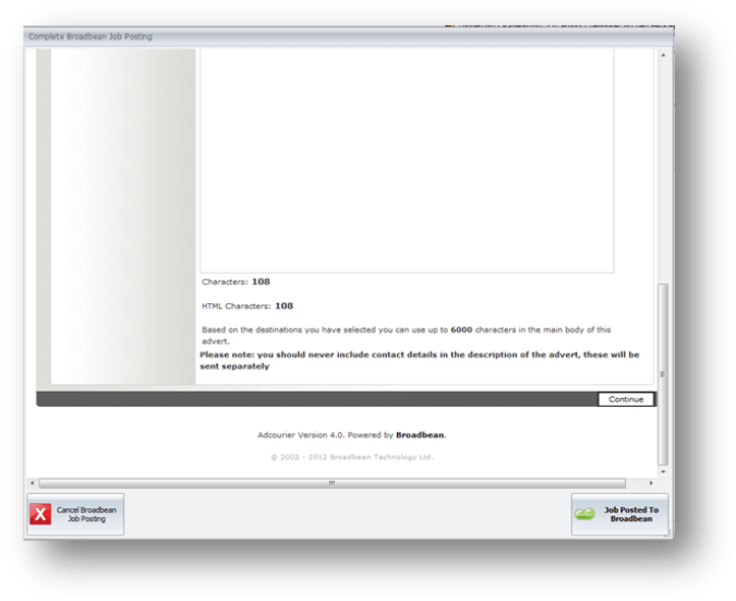 NOTE - If you cannot see anything on the Job page that refers to Broadbean, please contact your system administrator
