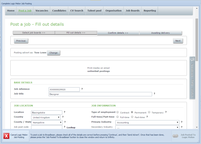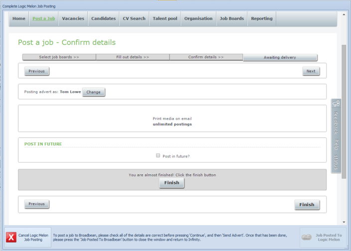 NB: - if you need to repost the job advert you will need to do this via LogicMelon