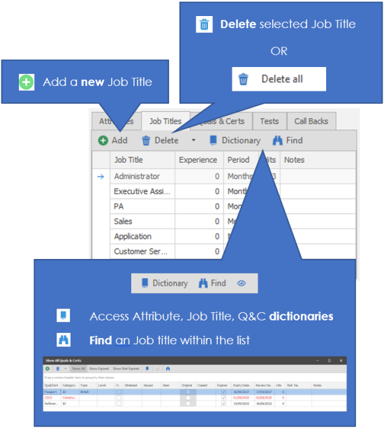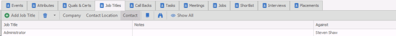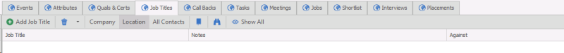 Job Title(s) can be put against candidates, contacts, companies or company locations. The candidate Job Titles are either picked up automatically from the CV or you are able to manually add / remove as appropriate.