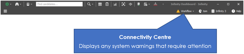 | Allows you to quickly find candidates, companies, jobs, interviews or placements records in Infinity. See the Find section for more details. |
