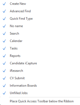 Quick Switchesuntick to add or remove default buttons from your quick access toolbar, to access additional buttons see user options Place Quick Access Toolbar Below the RibbonThis will allow you to move this Quick Access Toolbar to lower section of the toolbar |