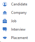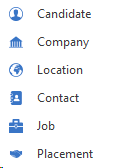 Allows to begin a search for candidates, companies, locations, contacts, jobs or placements. |