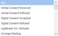 Action Comms Invoked – Set the action comms to invoke when the user manually logs an event that matches Step 1. The following options are available: