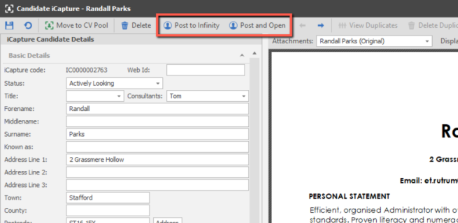| Posting new or updating candidates into Infinity will be the trigger - the action will be a Call Back and / or Task |