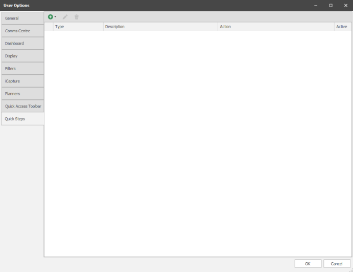Quick Steps can be made inactive by ticking the Active column (as default they will be active)