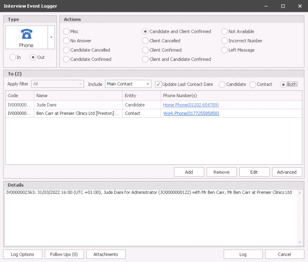 - When logging a "Confirmed with Candidate & Client" Event in an Interview record, automatically prompt to send the Interview Confirmation Emails.