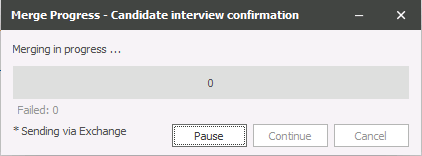 Note: When the invoked comms is sent, the user will be presented with the ‘Merge Progress’ window as per standard merging functionality. If multiple comms is sent (e.g. to candidate and contact or SMS and email) the window will present for each one