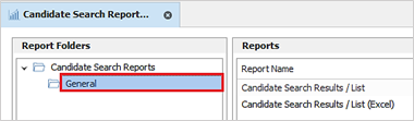 When sending the results, the 'Candidate Search Reports’ or ' Contact Search Reports' area is opened showing folders and reports within (if the user has permission to the report folder).