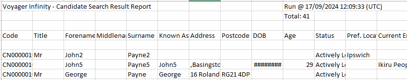 The candidate and contact search results/list’ reports are available from candidate / contact search ‘Results’.