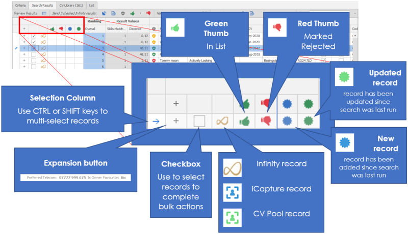 Below the image shows extra columns if you search other data pools, such as iCapture or the CV pool