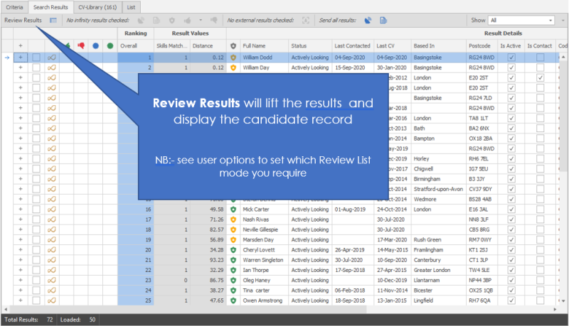 The rankings awarded are regarding the whole database, Text ‘hits’ are no longer available, but are displayed as part of Ranking. The Ranking is influenced by the frequency of the skills in a CV, how close together the skills are and how high up the CV they are. This is a more sophisticated way of producing a rank. This ensures each searching section is treated independently and then the combination of these ranks will award their overall rank.