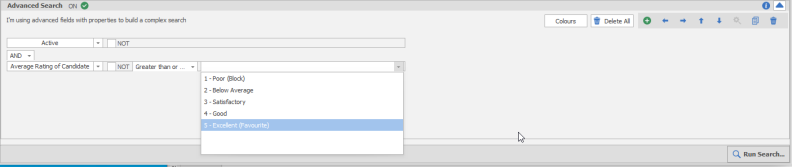 Both the Client specific feedback and the Average Rating are columns available within the quick search panel in the shift planner and also via search criteria within the search builder, see below section on Searching Review Scores.
