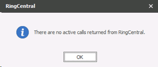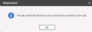 When clicked, Infinity will pass the call details to RingCentral. If a call is already in progress a message is returned and the call cannot be started