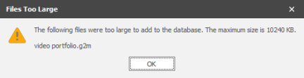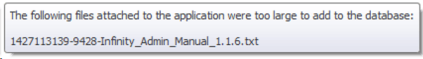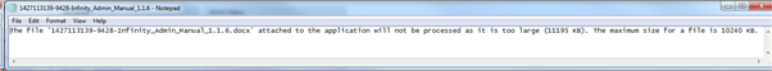 When adding a CV / attachment / photo / notes into Infinity, you will be prevented from attaching the file if the file is too big, the maximum size you are able to attach will be displayed within the "File Too Large" error message: