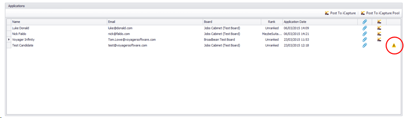 When receiving Broadbean applications you will receive a warning within the Applications list: