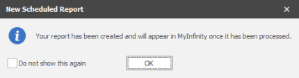 Due to the nature of the SaaS service you are unable to run a report instantly and will need to set it up as a schedule (see below) so it can run when the next report service runs, if multiple users run reports at the same time it may take several minutes for the report to be available.