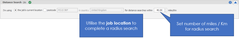 If you have the Distance Search licence you are able to do a distance search in this part of the screen. If you do not have the distance search option and would like to add it to your account, please contact customer services who will be happy to discuss costs with you