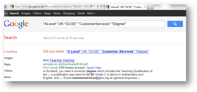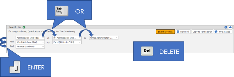 ("A Level" OR "GCSE") AND ("Customer Services") AND ("Degree") if you require additional help you can click on the edit button and bring up the DT search screen.