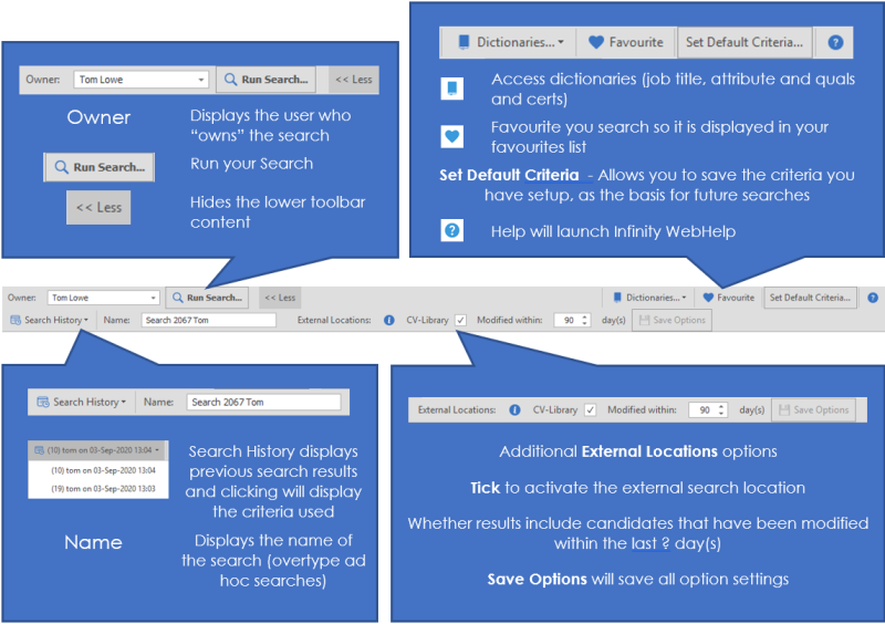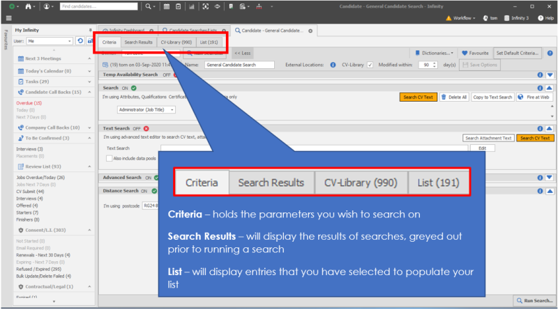 CV Library - (candidate searches only) if implemented by your system administrator, see CV Library section for more details