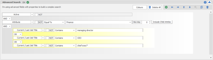 It will give me a result of anyone who has Finance attribute combined with a job title of either Managing Director or CEO or Chief Exec*