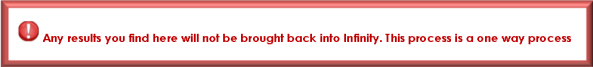 - This area is for the more complicated searching you may want to do regarding the records fields within Infinity. You are able to include the same criteria that you have included in the first section if you wish, but you have more flexibility in the type of searching.