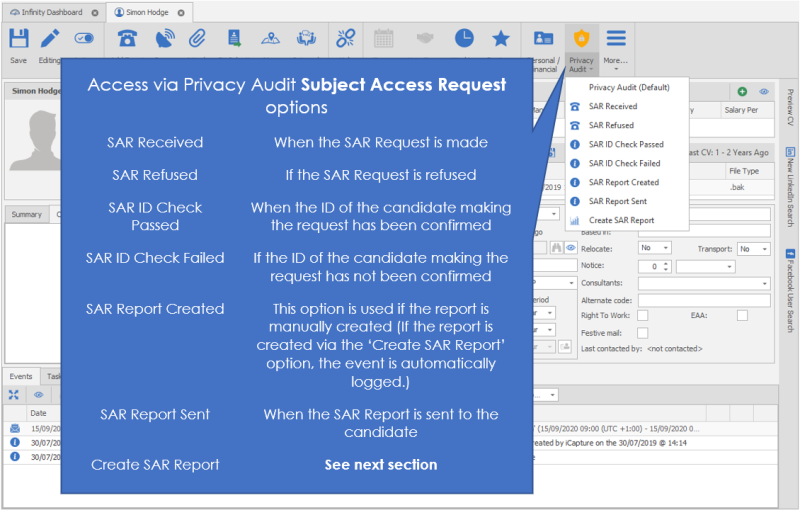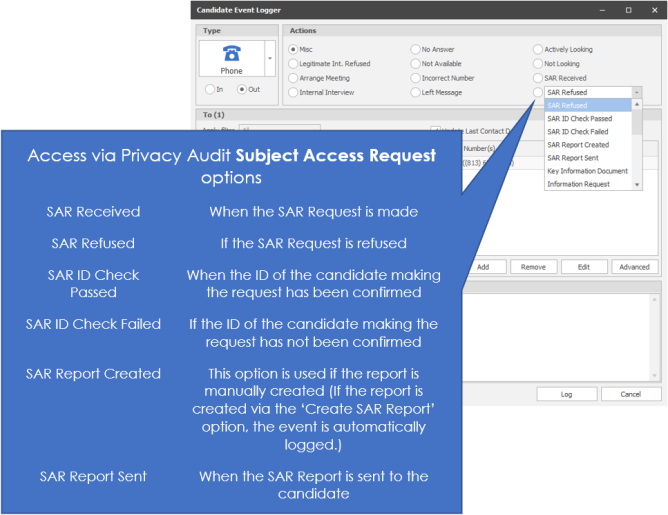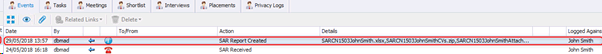 The following SAR Events can be logged from the ‘Privacy Audit Icon’
