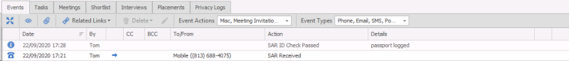 • Includes Candidate page attachments, event attachments including those logged against other pages and linked to the Candidate e.g. Placement