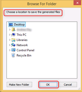 You will then be asked for Browse for the folder where the files will be stored
