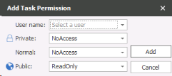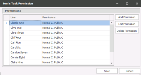You can allow other users access rights to your tasks and task list. To add a user click on Add Permission,