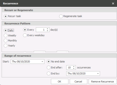 Recurrence enables you to recur or regenerate a task.